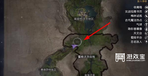 2 、点击下图位置把地图拉近选择霍格沃茨谷地西侧的一座城堡,